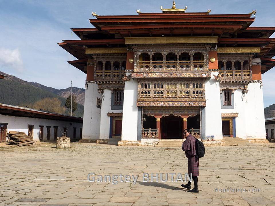 Caminata a Chimi Lhakhang (templo de la fertilidad): Este templo fue construido por lam Drukpa Kuenley (El Divino Loco) en 1499, unos 30 minutos de camintata, en la carretera nos encontraremos unos postes-falos que cuelgan en las cuatro esquinas de la casas y también falos se pintan en las paredes de las casas. Es la creencia común de que esto ayuda a ahuyentar a los malos espíritus. Más tarde viaje en coche a Gangtey. Hotel en Gangtey
