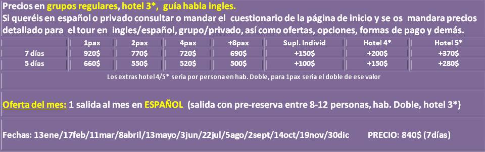 Y si quieres otros tours o países o actividades, rellena el cuestionario de la página de INICIO y se te mandara opciones, presupuestos e información detallada