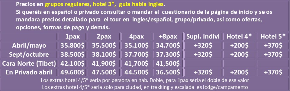 Escríbenos en: info@nepalviaje.com y nos dices el tour que te interesa, la fecha, número de personas y te informaremos personalmente de todo lo que necesites saber, precios, salidas, etc. Gracias
